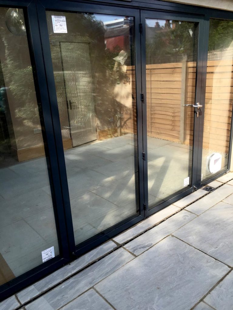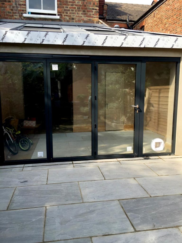 Create a seamless transition from a new, modern extension to a small, landscaped space.
