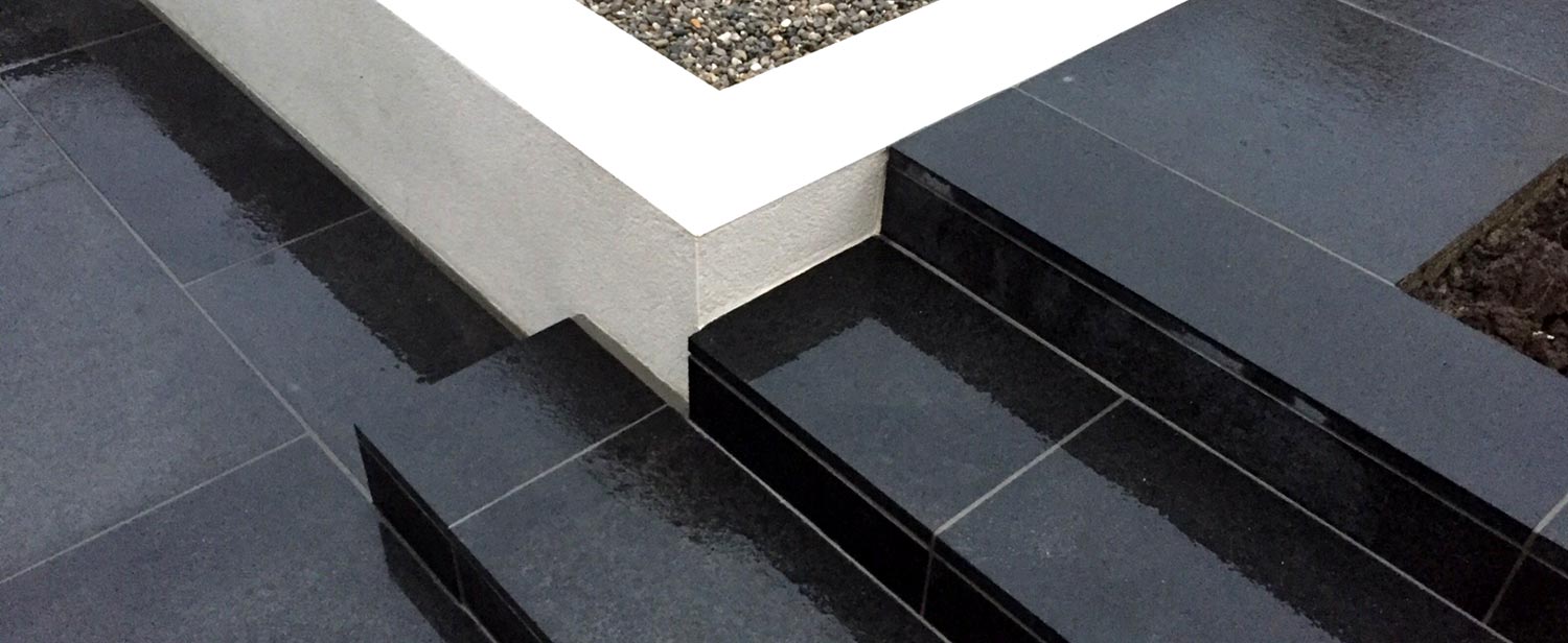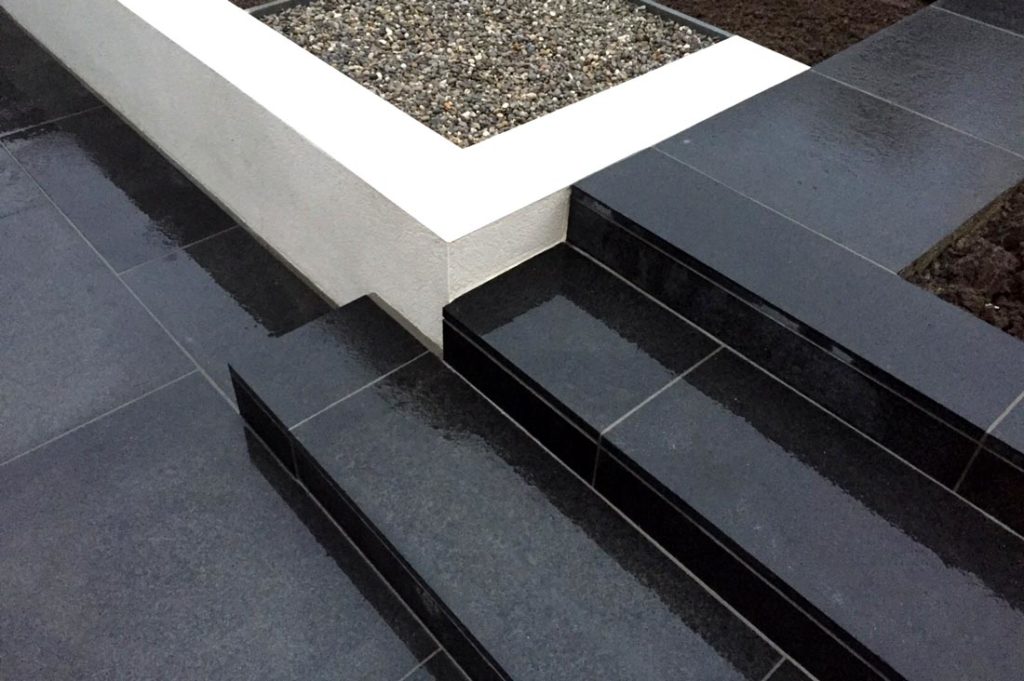 Midnight Black Limestone Paved Path with Black Polished Pebbles